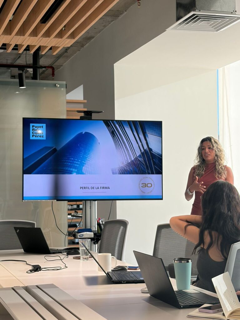 Estamos muy agradecidos con Thaís Avalos Vega, abogada del reconocido Estudio peruano Payet, Rey, Cauvi, Pérez Abogados, quien actualmente se encuentra realizando una pasantía en VGC Abogados. Thais tuvo la amabilidad de compartir con nuestro equipo una presentación detallada sobre su estudio, destacando la trayectoria, prácticas más significativas y proyectos en los que trabajan. Su presentación no solo fue informativa, sino también inspiradora, permitiéndonos conocer de cerca su trabajo así como los desafíos que enfrenta.