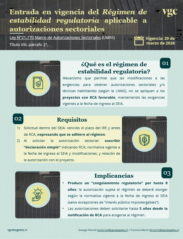 Entrada en vigencia del Régimen de estabilidad regulatoria aplicable a autorizaciones sectoriales